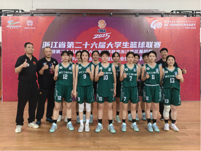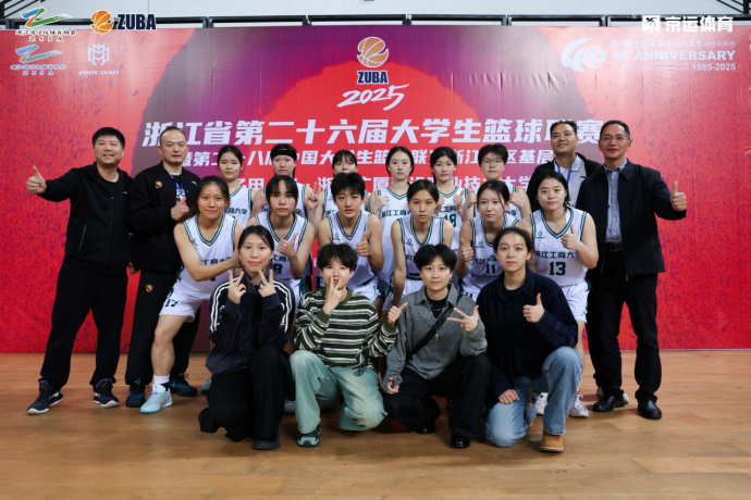2025年11月1—8日,浙江省大学生篮球赛(女子甲A组)在金华市浙江广厦建设职业技术大学举办,本次比赛共有来自全省12支甲A组女篮代表队参加,我校女子篮球队在领队郑苏法,教练员刘志、沈建国老师的带领下,参加了本次比赛。比赛期间校党委副书记方向明亲自到比赛现场为女篮姑娘们加油助阵,并勉励全体队员要积极发扬顽强拼搏的浙商大体育精神,赛出风格赛出水平!我校女篮一路过关斩将,最终获得第三名的好成绩,刘志老师荣获“浙江省优秀教练员”称号。